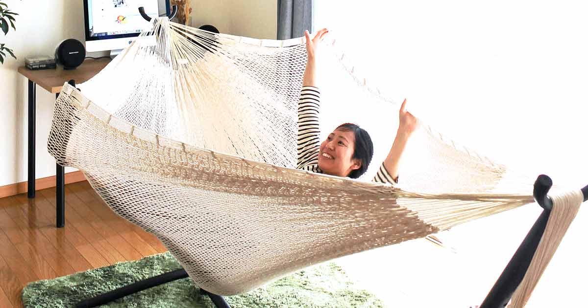 ベッド代わりにハンモックで眠る!朝まで快適な寝心地SakiHandwritten。