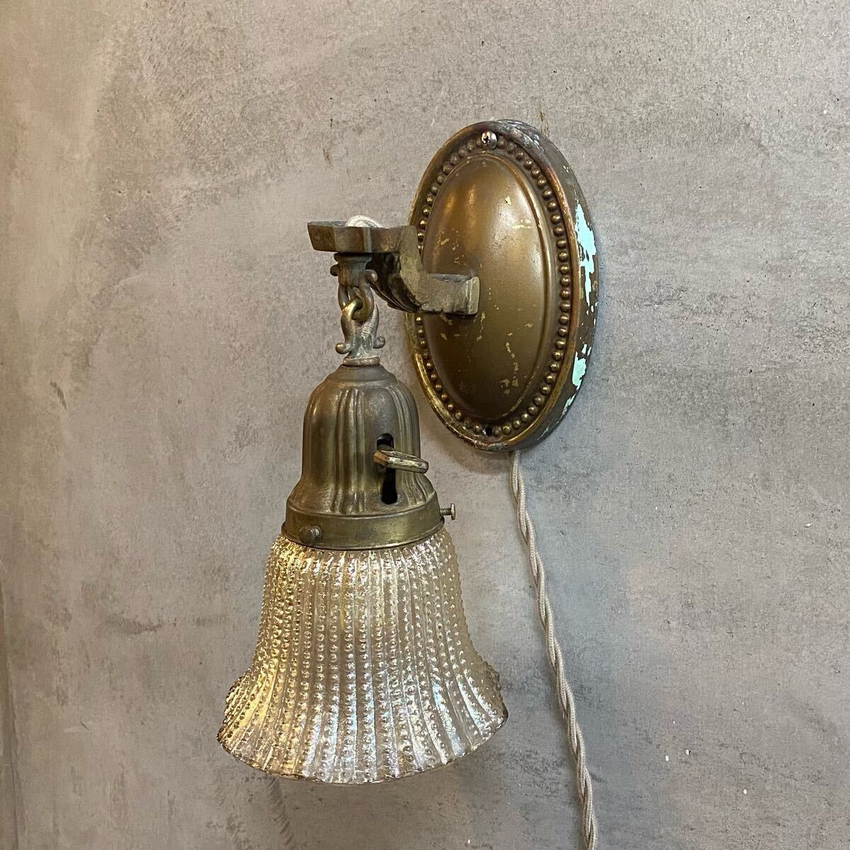 ヴィンテージ アンティーク ウォールランプ 壁付け照明 ブラケットランプ ライトガラスシェード 真鍮 E26 店舗什器。