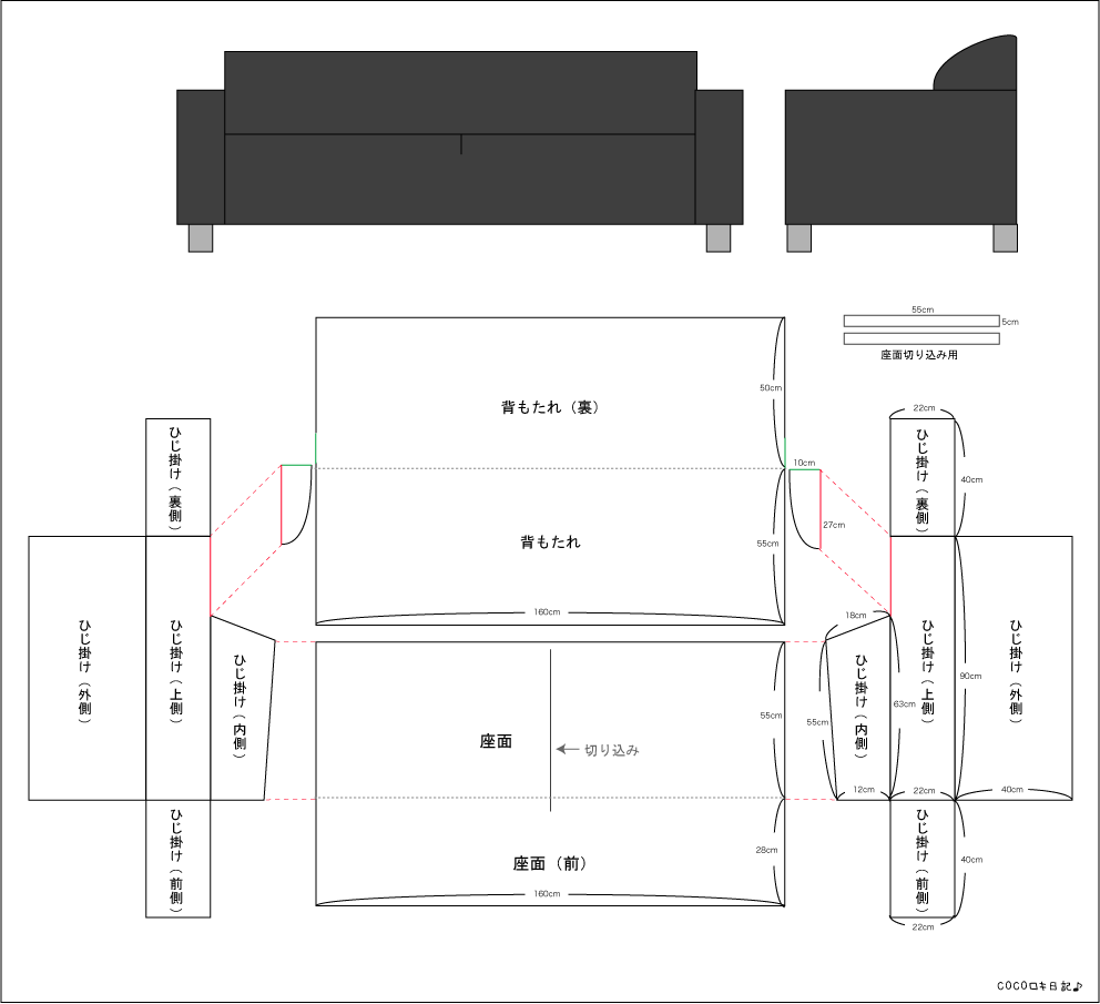 ソファカバーを手作りしたいと思っています。この角の部分の測り方と- Yahoo!知恵袋。