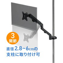 モニタアーム 支柱取付 ポール取付 細い支柱向け 49インチ 耐荷重20kg ラックマウント メタルラック EZ1-LA051 モニターアーム支柱取付 ポール取付 水平3関節アーム 34インチ対応 高耐荷 15kg 細支柱向け 100-LA053の販売商品通販ならサンワダイレクト。