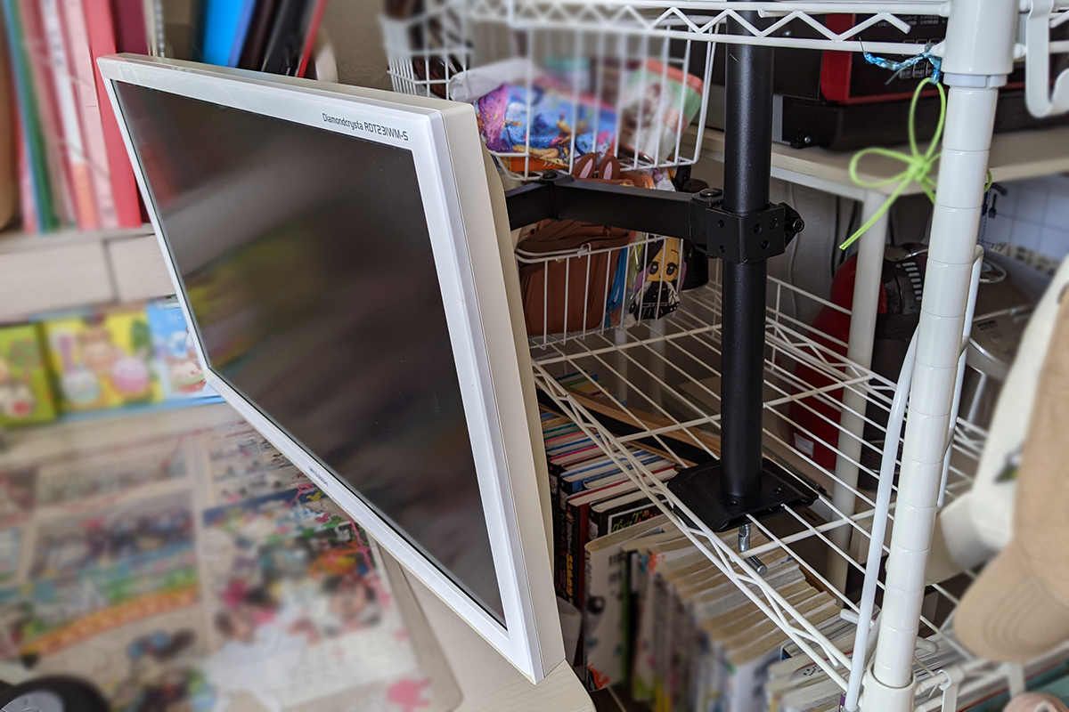 モニターアームをスチールラックの支柱に取付けました今なら30%オフ ErGearのモニターアームはコスパ最強 - モニオの部屋。