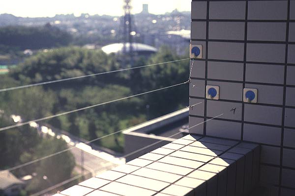 ベランダの鳥よけは、まずフェンスにヒモを張ってみて!物干しスタンドでも、簡易スタンド手作りでもヒモが張れるよ。