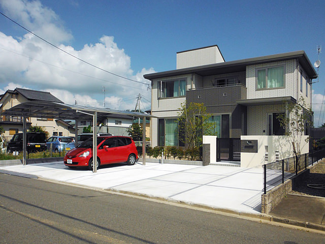 駐車場コンクリート デザイン性あり使いやすさも重視岐阜県 多治見市 K様邸 - 楓林庭多治見・土岐・瑞浪・可児のエクステリア外構工事。