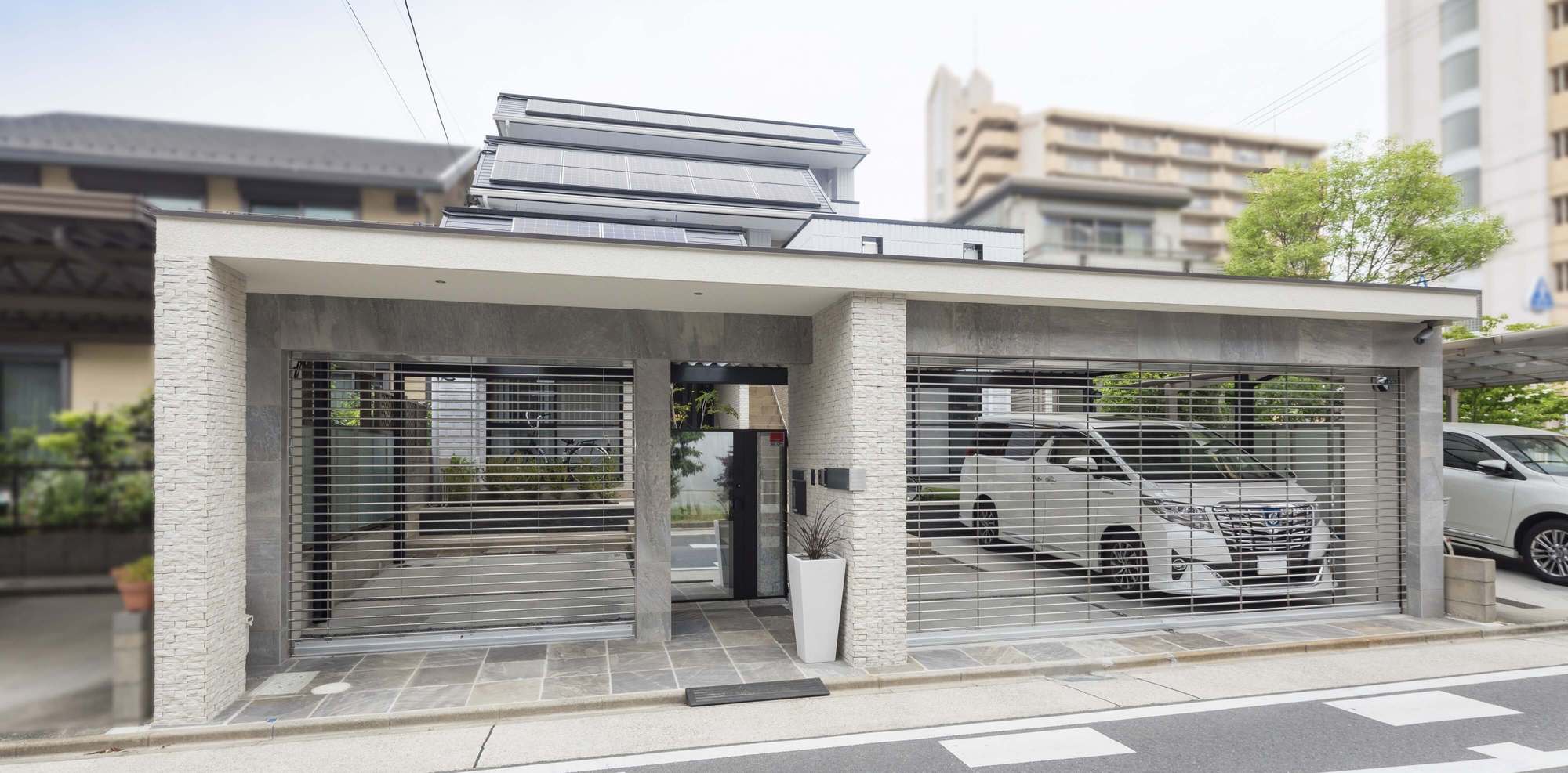 クローズド駐車場つきの大型ゲートプラン愛知県名古屋市外構・エクステリアのディーズガーデン愛知県名古屋市の外構 エクステリア ・新築外構 ・お庭⼯事は専⾨ショップディーズガーデンへ。