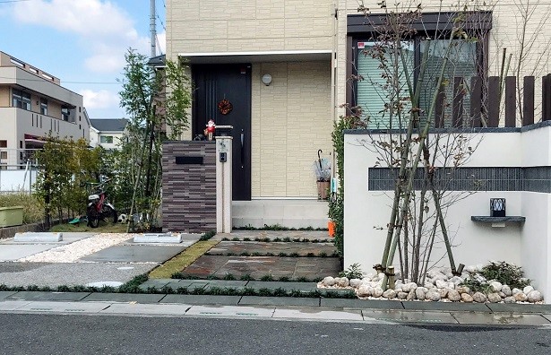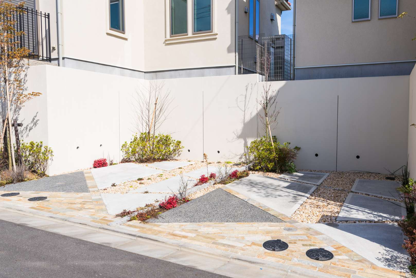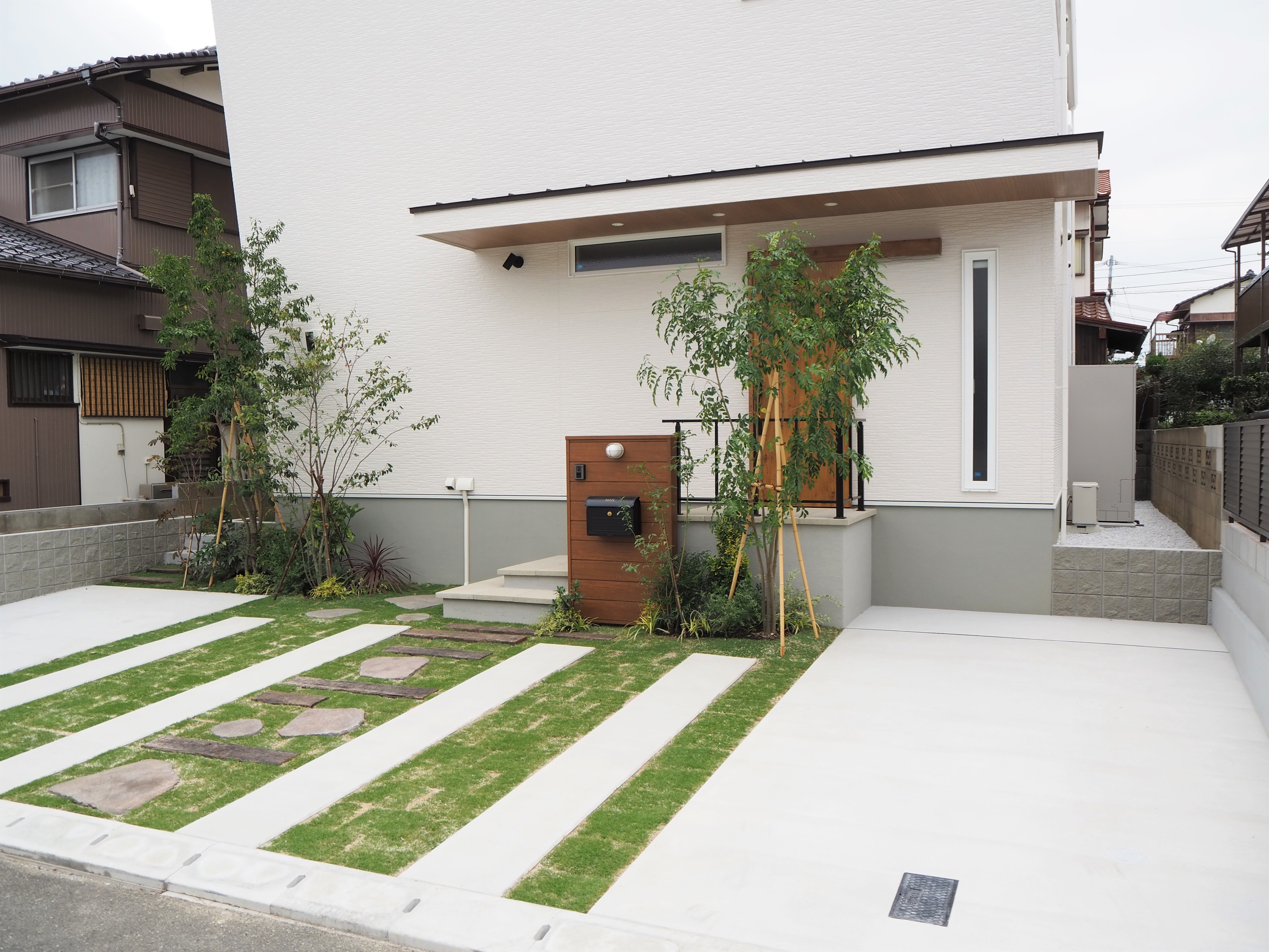 シンプルでおしゃれな外構デザイン事例玄関&駐車場の作り方ミモザガーデン。