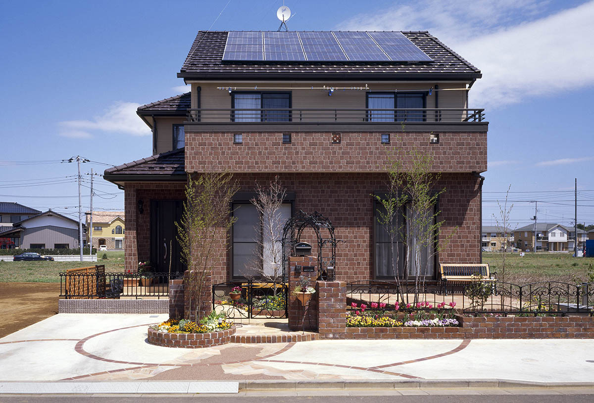 駐車場を兼ねたレンガのアプローチ – ガーデンスタジオ雅楽庭・新光園 – 新潟の庭・ガーデニング&外構・エクステリアデザイン工事。