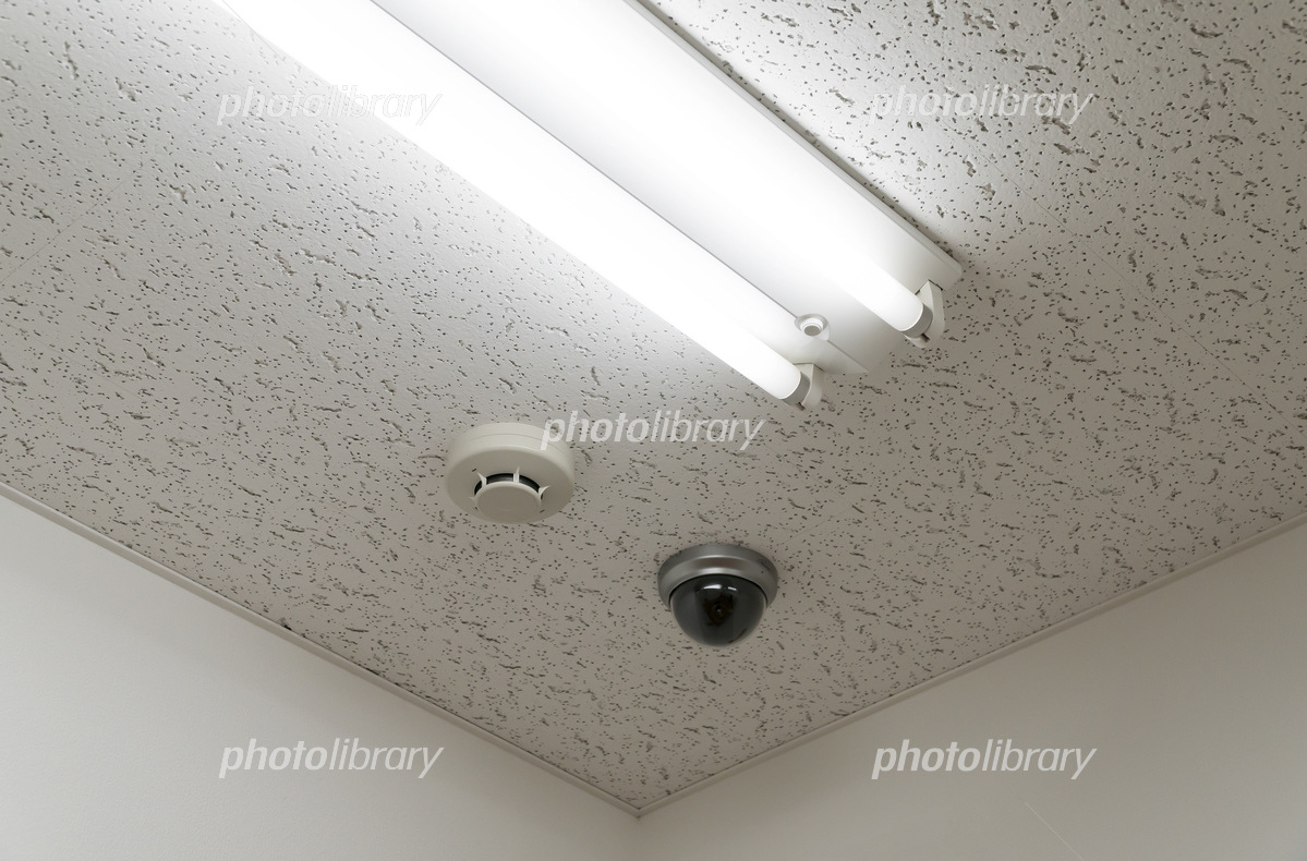 オフィスの天井 防犯カメラ 照明ベースライト 火災報知器 写真素材5361957- フォトライブラリ。