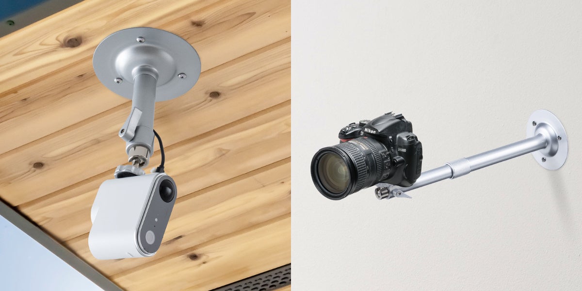 防犯カメラを天井や壁面に設置するカメラ用壁面スタンド サイズ違いで2種類を1月27日に発売サンワサプライ株式会社のプレスリリース。