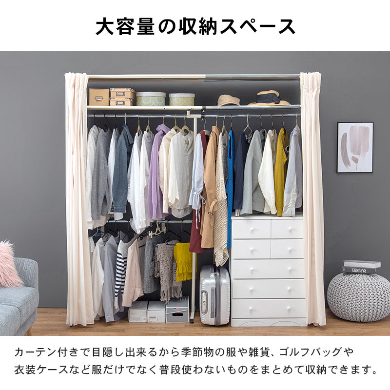 伸縮式クローゼット幅118-195棚なし 棚付きGrandeおしゃれな家具・インテリア通販ならクオリアル公式ショップ。