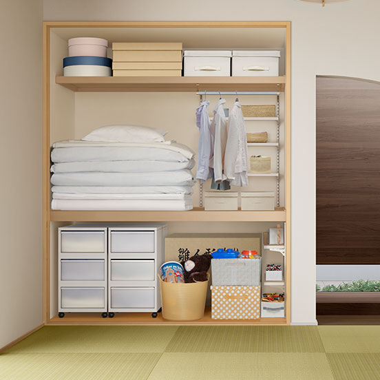 LIXILリフォームいまどきのリフォームリビング・寝室・居室編収納内部の枕棚・中段でデッドスペースを活用。