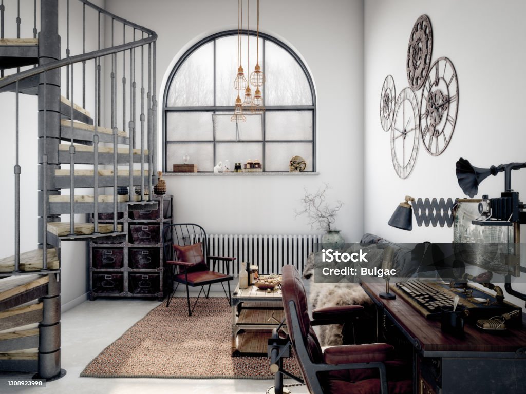スチームパンクスタイルホームインテリア - スチームパンクのストックフォトや画像を多数ご用意 - スチームパンク, 家の中, 居間 - iStock。