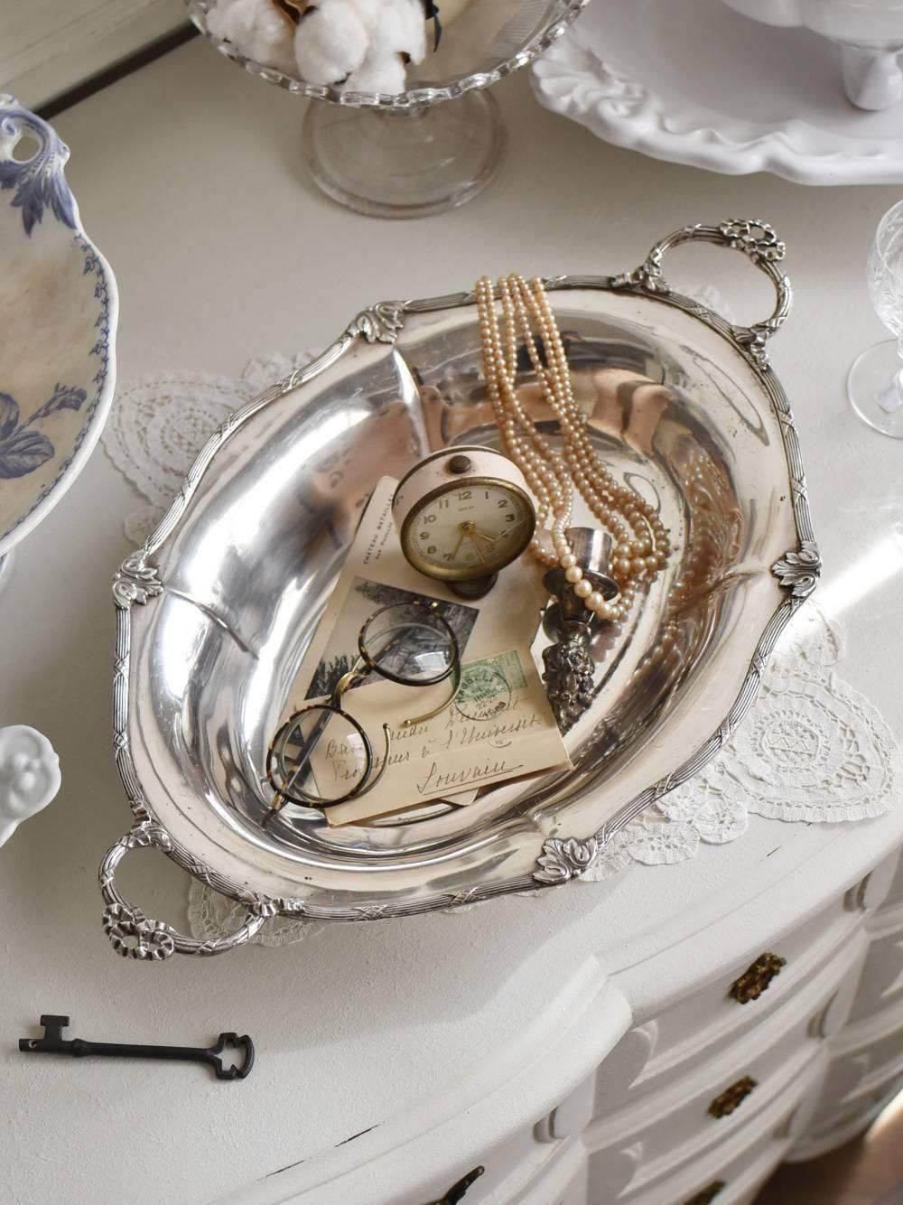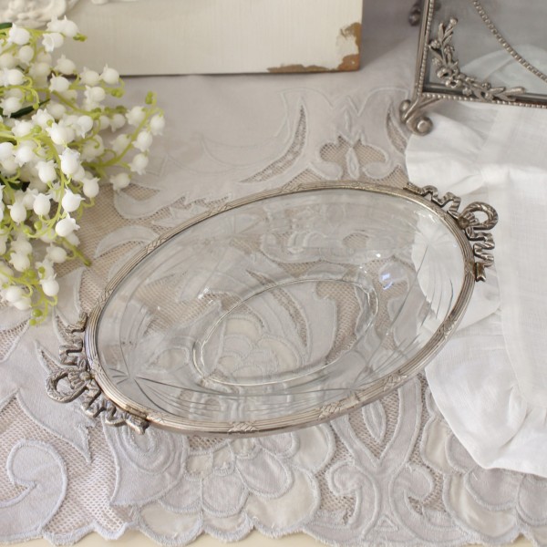 シルバートレイ.9 フランスアンティーク雑貨 フレンチインテリア リボン装飾。
