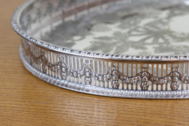 英国のアンティークシルバーの美しい器、透かし彫りの美しいシルバートレイ m-6623-z アンティーク雑貨。