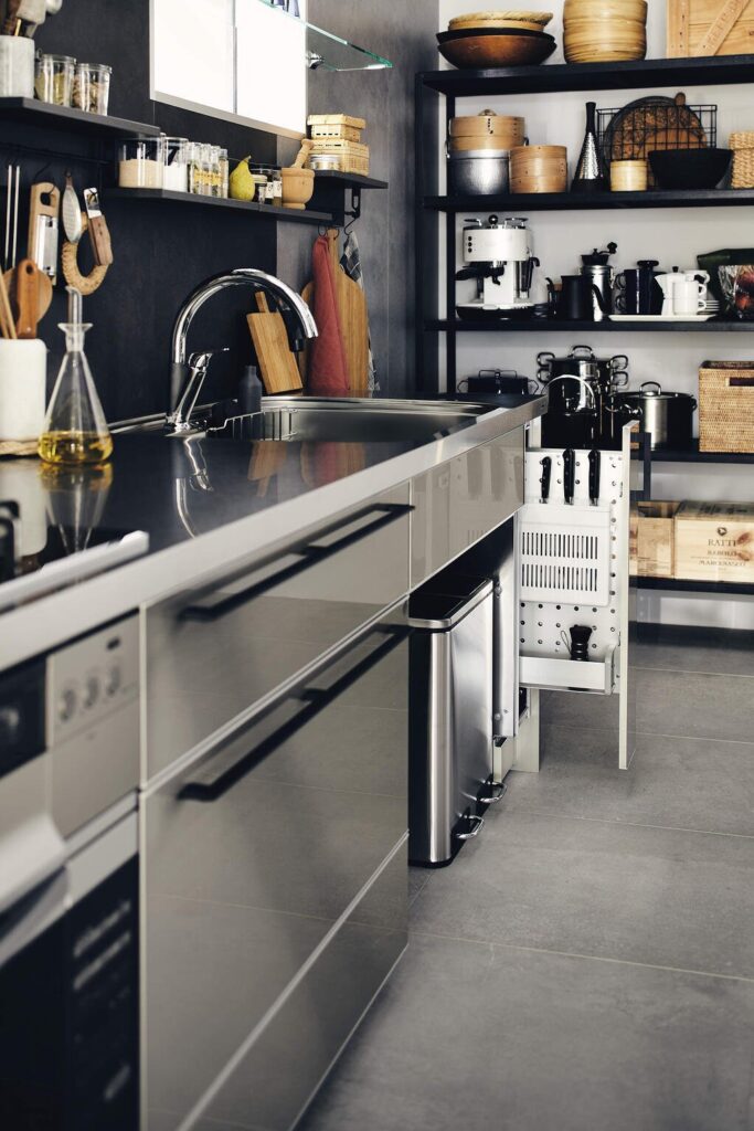オールステンレスのシステムキッチンで叶える、“厨房ライク”な空間づくり住まいのスタイリングアイデアミラタップ 旧サンワカンパニー。