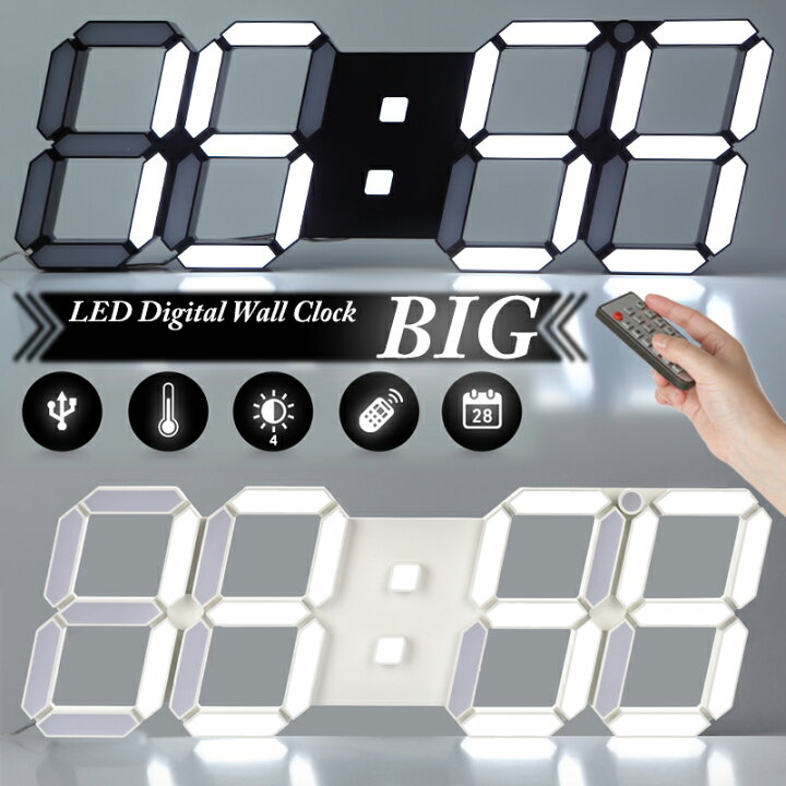 新品未使用大きいデジタル時計 デジタル時計 壁掛け デジタル リモコン付き 壁掛け時計 電波 北欧 モダン おしゃれ 掛け時計 静音 LED デジタル時計掛時計 光る リビングの通販はau PAY マーケット - kl-shop au PAY マーケット店au PAY マーケット-通販サイト。