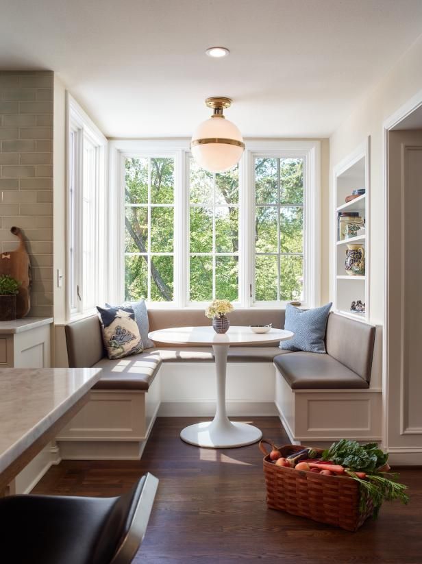 リビングダイニングの一画に備え付けられた、朝食を取ったりするためのこじんまりしたスペース“NOOK ヌック “は、レストランのブースシートみたいな形状で、隅っこだからこその居心地の良さが魅力。ちゃんとDinnerを食べるにはダイニングテーブルがあるし、軽い朝食や。