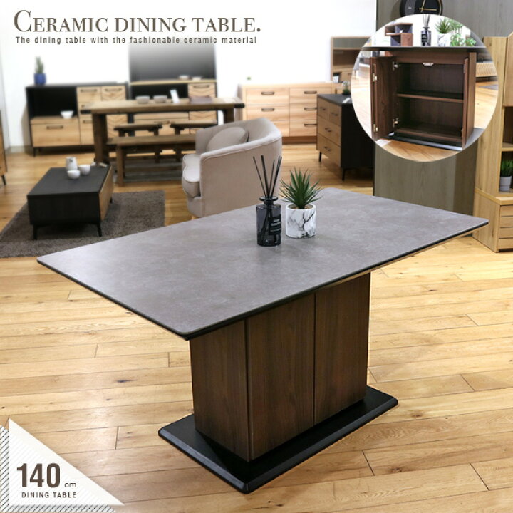 ダイニングテーブル セラミック 収納 4人用 140 単品 おしゃれ モダン 4人掛け 収納付き 扉付き グレー 丈夫 キズが付きにくい 傷に強い熱に強い 1本脚 かわいい 人気 おすすめ gkwnook-lala ヌックララ。