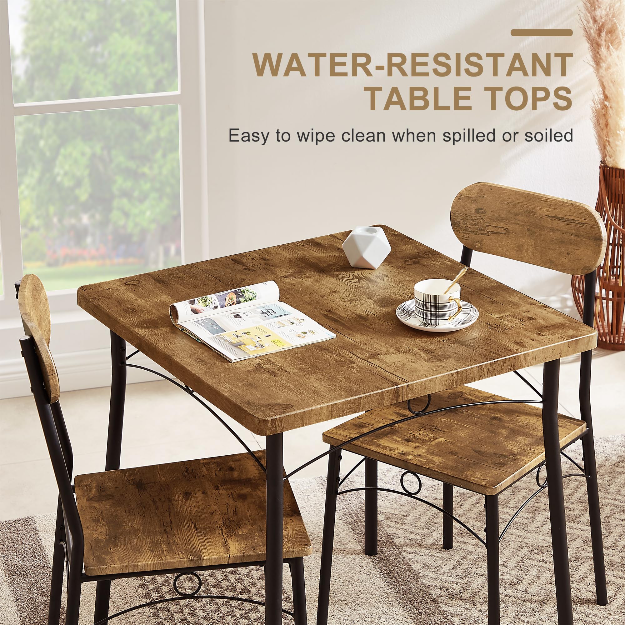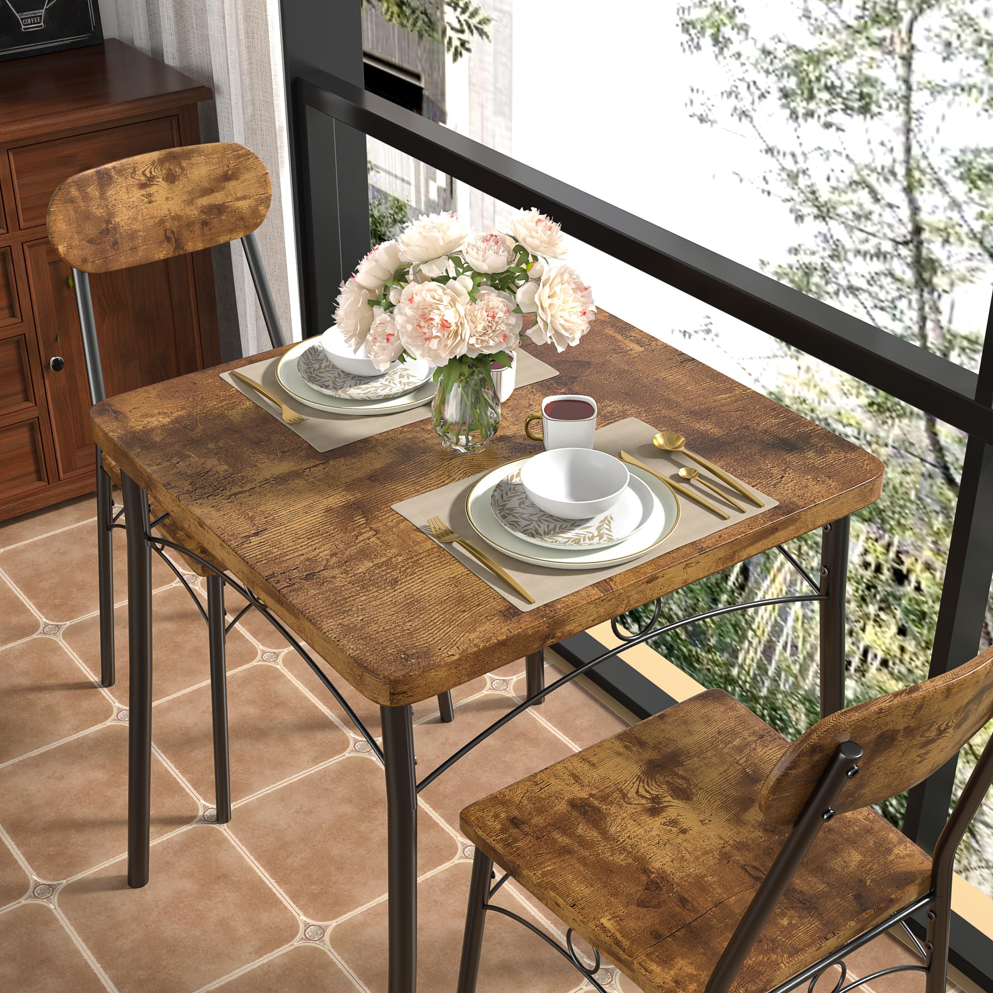 AmazonVECELO ダイニングテーブルセット 金属と木製の正方形キッチン 朝食用ヌック 3ピース ダイネット 椅子付き 27.5インチブラウンダイニングセット オンライン通販。
