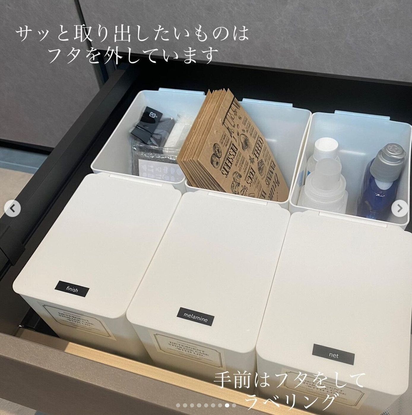セリアの白いキッチントレーを使って引き出しを簡単に美しく! 収納ワトコさんのdiyでカフェインテリア。