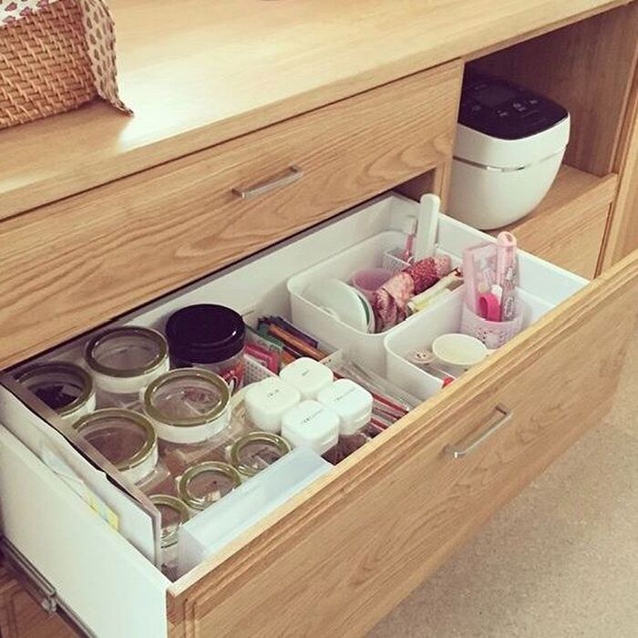 セリア キッチン100均収納☆作業スペースの引き出し収納を見直しました。 : MAIKOStyle。