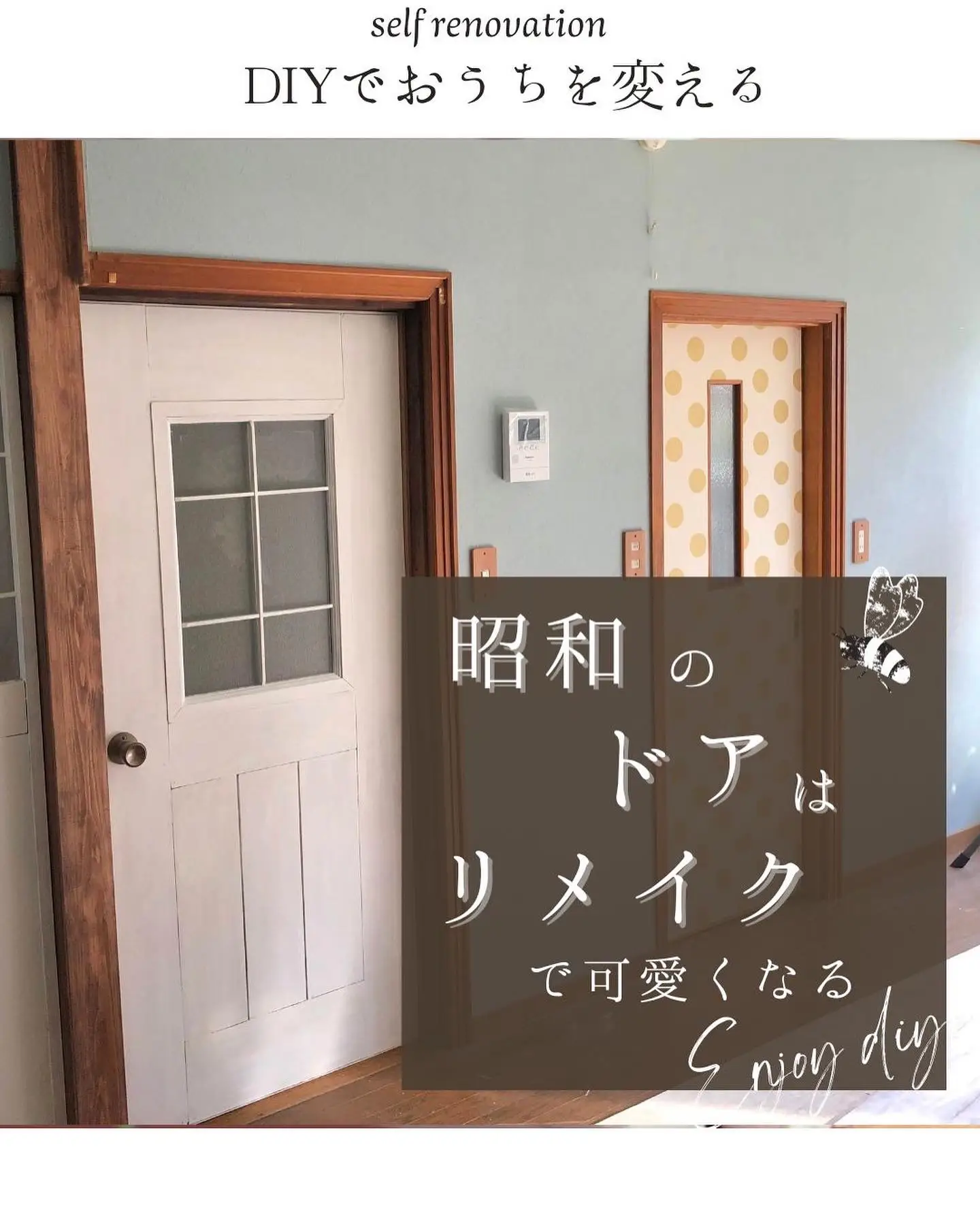 築40年DIY6 ドアリメイク劇的ビフォーアフターお金をかけずにおしゃれに大変身。