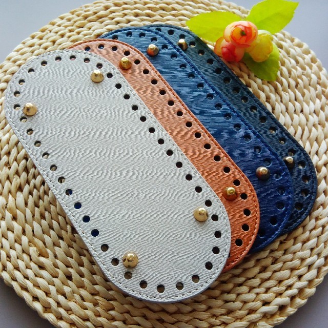 楽天市場 編みつけバッグ底板 リベット付き 全6色 12×25センチ 楕円形 ハンドメイド 底板 バック 合皮 リベット 座鋲 DIY 編み物編みつけ 毛糸 Tシャツヤーン ヤーン 籠バッグ : ハンドメイド工房。