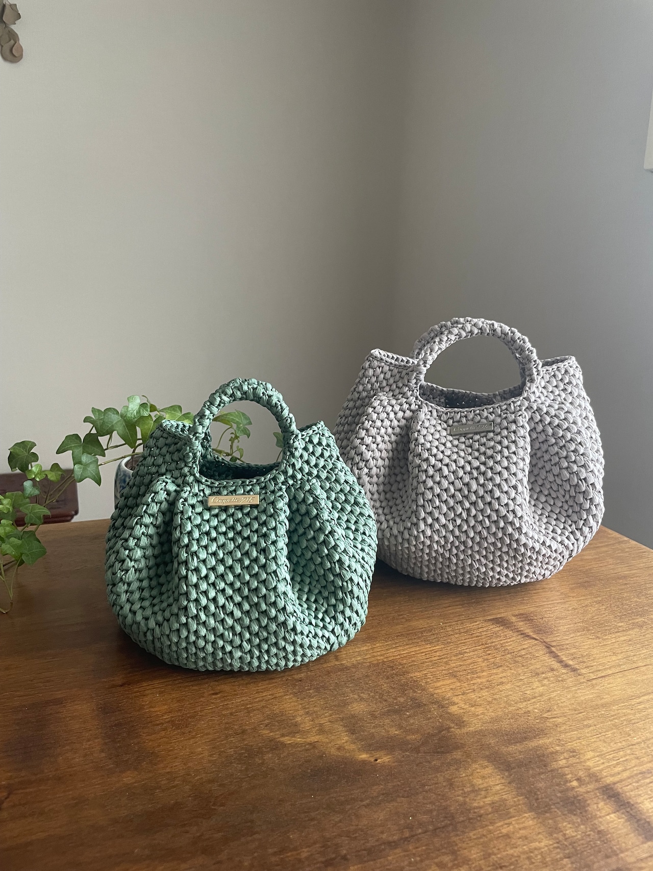 手編み毛糸のワンハンドルバッグ 底板付き 手編みバッグ ハンドメイドバッグ - メルカリ。