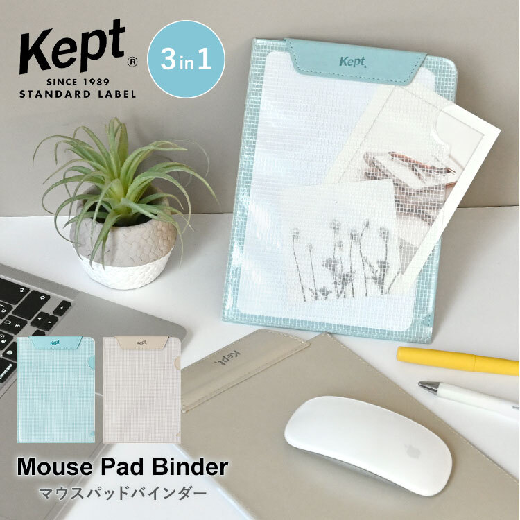 Kept マウスパッドバインダー ファイル バインダー A5 マウスパッド 持ち運び おしゃれ かわいい ケプト クリア メッシュ 透明 シンプル合皮 大人 大学生 高校生 軽量 小さめ マウスパット クリップボード マグネット 文房具 ブランド ステーショナリー ビジネス。