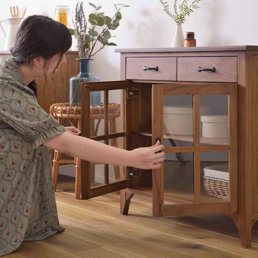 7千円以上で送料無料キャビネット 収納棚 幅80cm PM-320 木製 脚付き 強化ガラス ティンバー 完成品 リビング ダイニング インテリア家具蔵ネット CORNコーンシリーズ幅80 奥行40 高さ85 キャビネット ブラウン 完成品 日本製 西海岸ヴィンテージ 真鍮 国産 リビング。