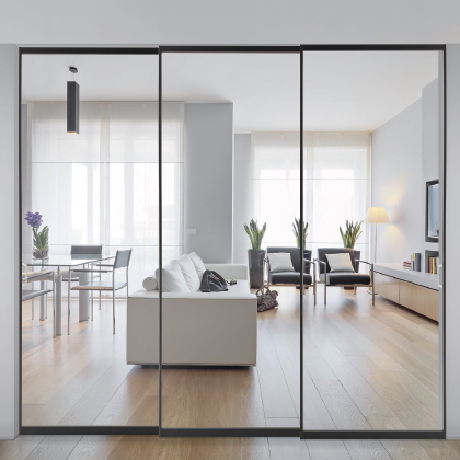 上吊りガラス引戸 Hanging & Sliding_black 建具・壁。