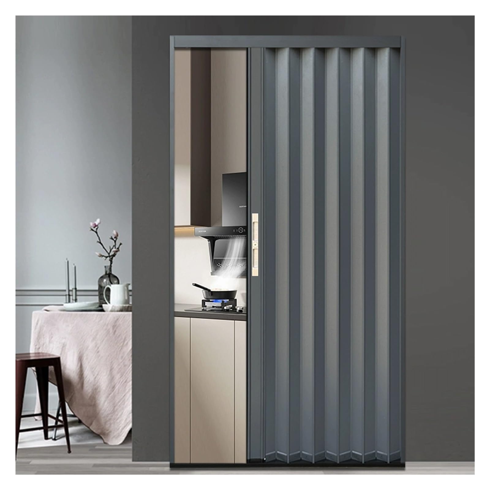 室内ドア 折りたたみ ドア カスタマイズ可能なサイズのアコーディオンドアハードウェアキット、グレーのコンサーティーナドア内部プラスチ アコーディオンドア小さな犬が玄関から出ないようにするパントリーのコンサーティーナ。