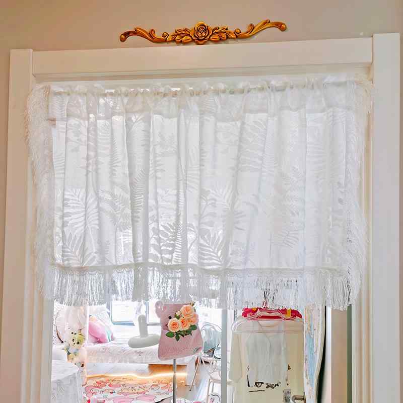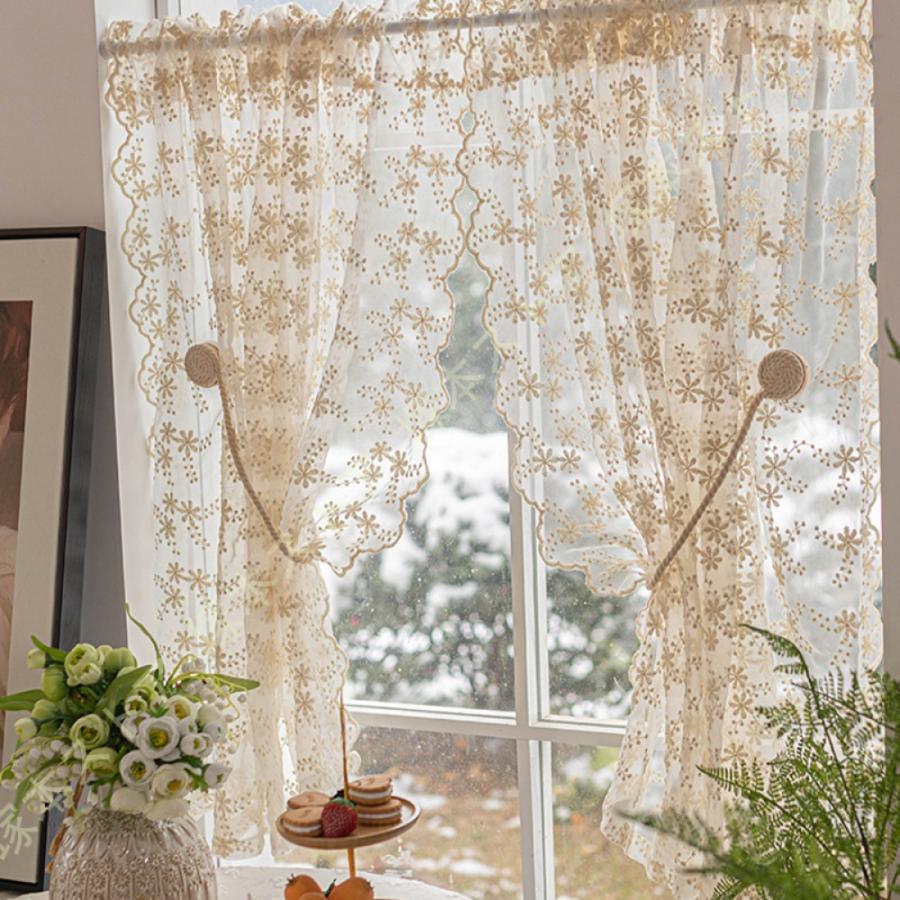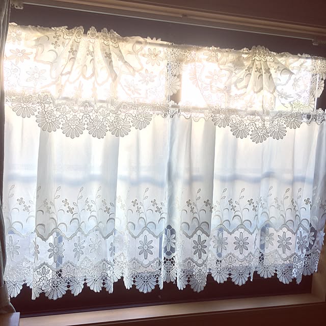 777円OFFクーポン レース カフェカーテン 目隠し 窓 部屋 キッチン 台所 透け感 小窓 インテリア リビング 子供部屋 トイレ 出窓 おしゃれかわいい カフェ風 小さいカーテン 小窓用 居間 花柄 新生活 姫系 薔薇 装飾 収納棚 holosbird-goods1 小窓のカーテンどうしてる。