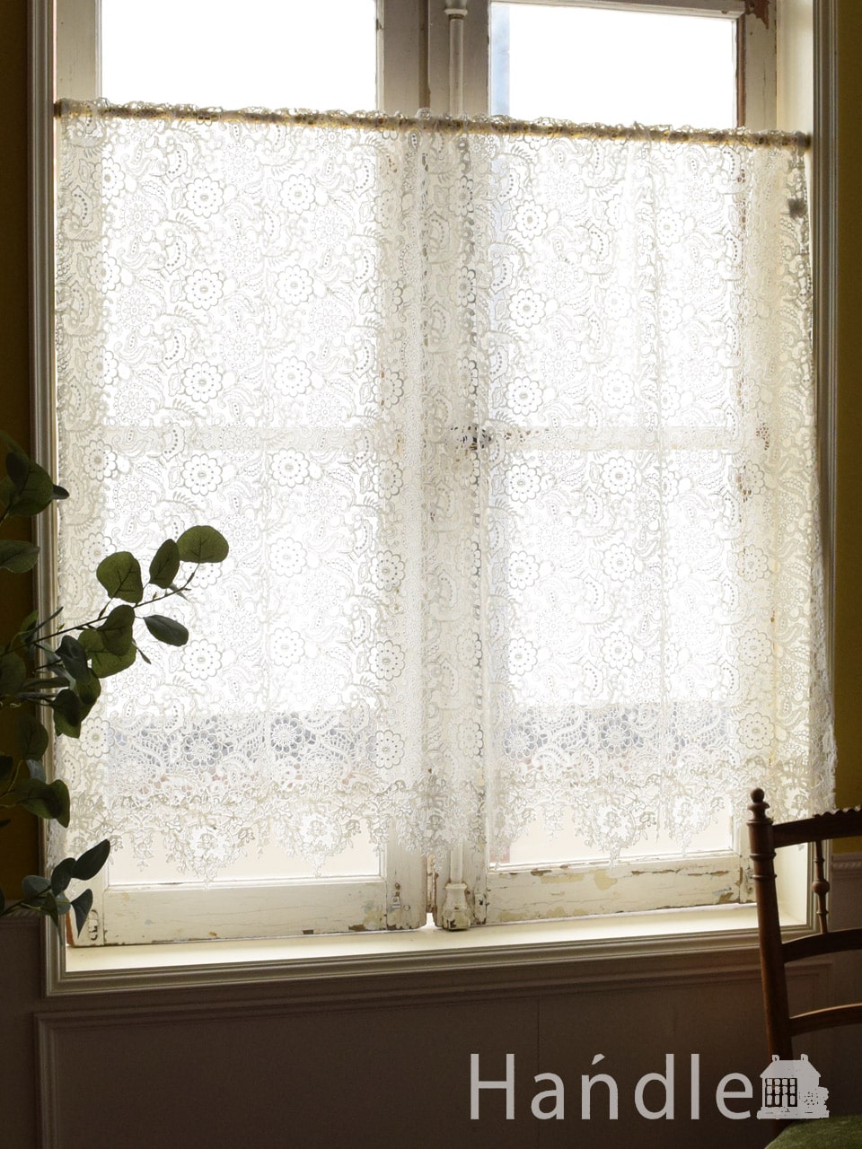 カフェカーテン おしゃれ かわいい レース レースカーテン 90cm 刺繍 チュール エレガント カフェカーテン プチローズガーデン 90won6835ギギliving。
