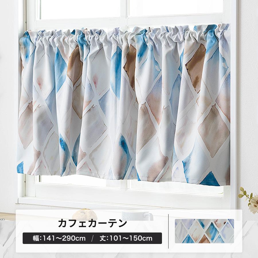 カフェカーテン 北欧 おしゃれ オーダー 幅141〜290cm 丈101〜150cm YS7002アイスOKC5。