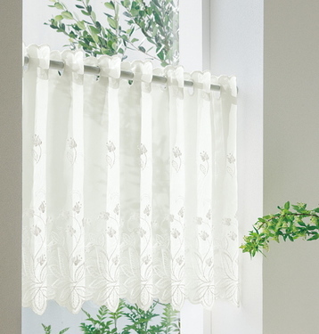 カフェカーテン 小窓用 カーテン つっぱり棒 目隠し おしゃれ レース 刺繍花柄 カラー1。
