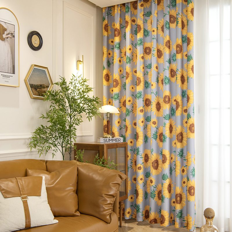 カーテン 遮光遮熱 リビング 子供部屋 姫系 エレガント フラワー ひまわり柄 おしゃれ 1枚。
