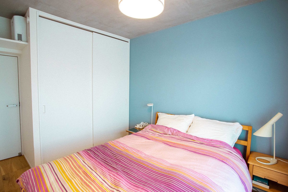ネイビーブルーの落ち着く寝室🐑 ◁◁詳細は2枚目〜 ネイビーブルーの寝室は、 シックで落ち着いた空間を作り出すのに最適です👌 寝室の一角に設けたWICLで寝室をスッキリ保てます😌💤 □壁・天井クロスサンゲツSP2832 □アクセントクロス サンゲツFE74477寝室。