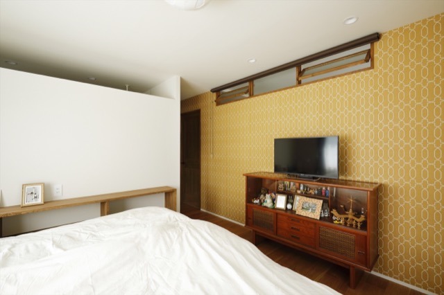 寝室のアクセントクロスでつくる、おしゃれでリラックスできる空間リノベーション・リフォーム・新築ならスタイル工房。