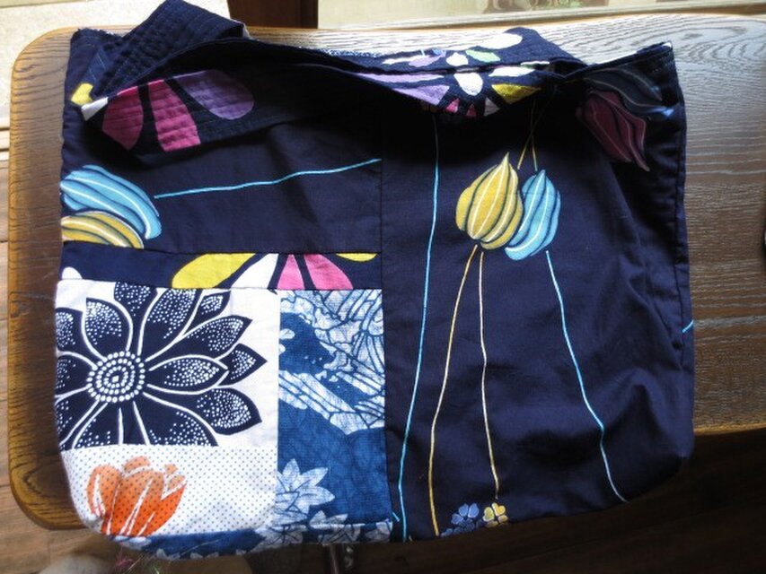 着物リメイク 浴衣の袖でエコバッグハンドメイドで しあわせ。