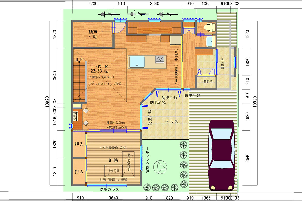 注文住宅 間取りプラン 中庭のある平屋の間取りの家栃木県宇都宮市の工務店 薄井工務店。