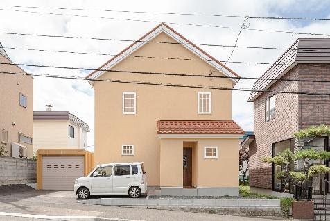 アイボリーの外壁にオレンジの屋根が映えるプロヴァンス風住宅施工事例株式会社オーパス。