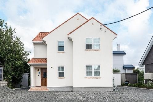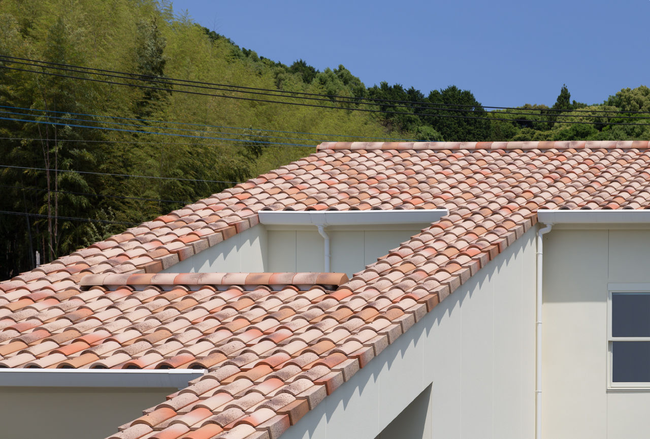 オレンジの瓦屋根に白い壁が映える外観 くふうイエタテ。