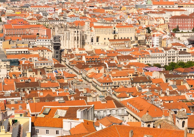 ヨーロッパの古い都市のオレンジ色の屋根の眺め観光と不動産のコンセプトPremium写真。