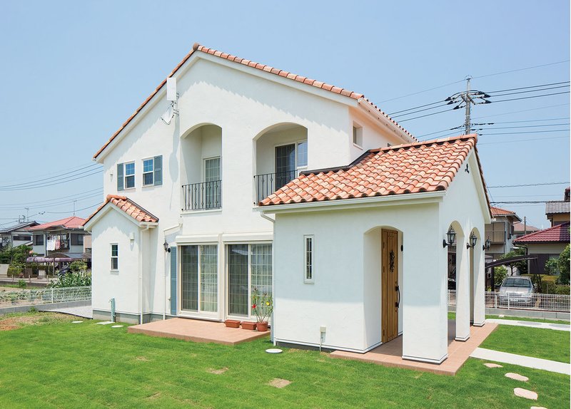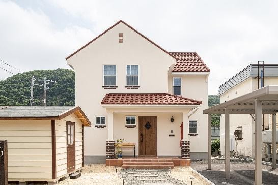 青空に映える白壁とオレンジの瓦屋根 プロヴァンス風の可愛い家完成見学会などイベント情報福岡で注文住宅・戸建・建売住宅なら田舎暮し。