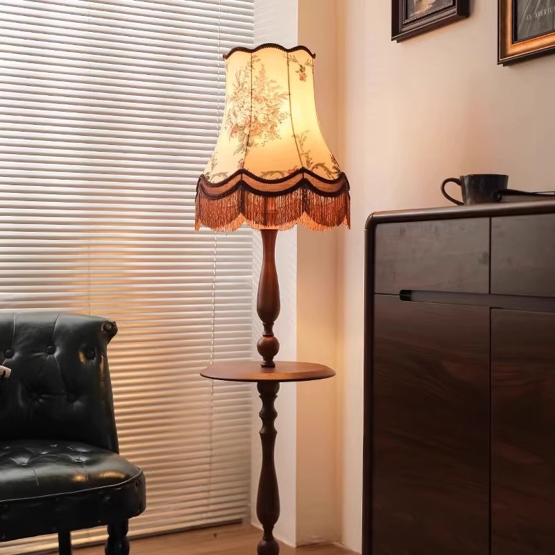 レトロなリビングルームの縦型フロアランプの実木アメリカ風の風。