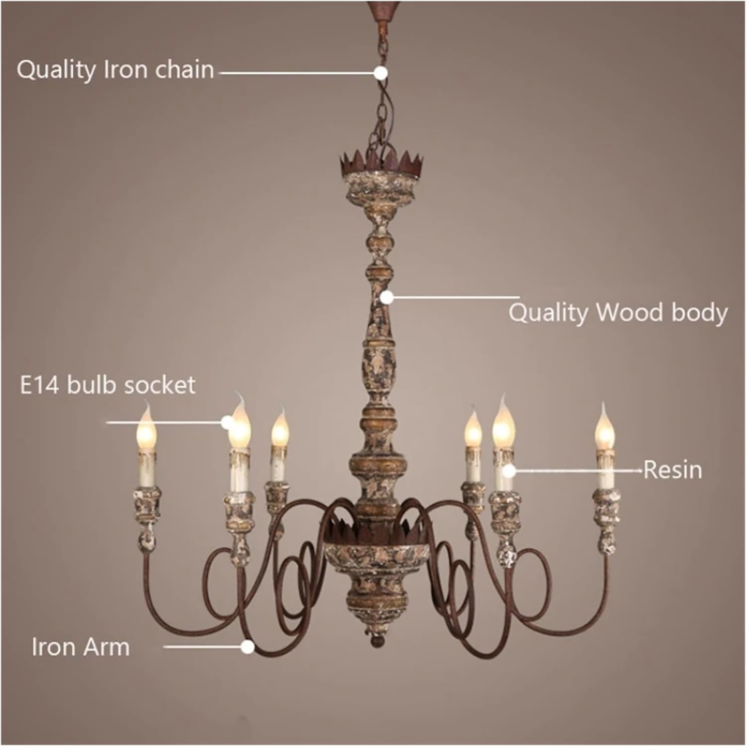 シャンデリア, アメリカの田舎のヴィンテージ木製シャンデリア照明器具カフェショップリビングルームダイニングルームペンダントランプキッ シャンデリアクリスタル照明 リビング照明 ダイニング 吹き抜け 店舗 クリア&白色 オシャレ。