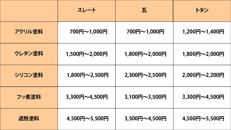 屋根塗装の単価表平米 スレート、トタン、軒天。