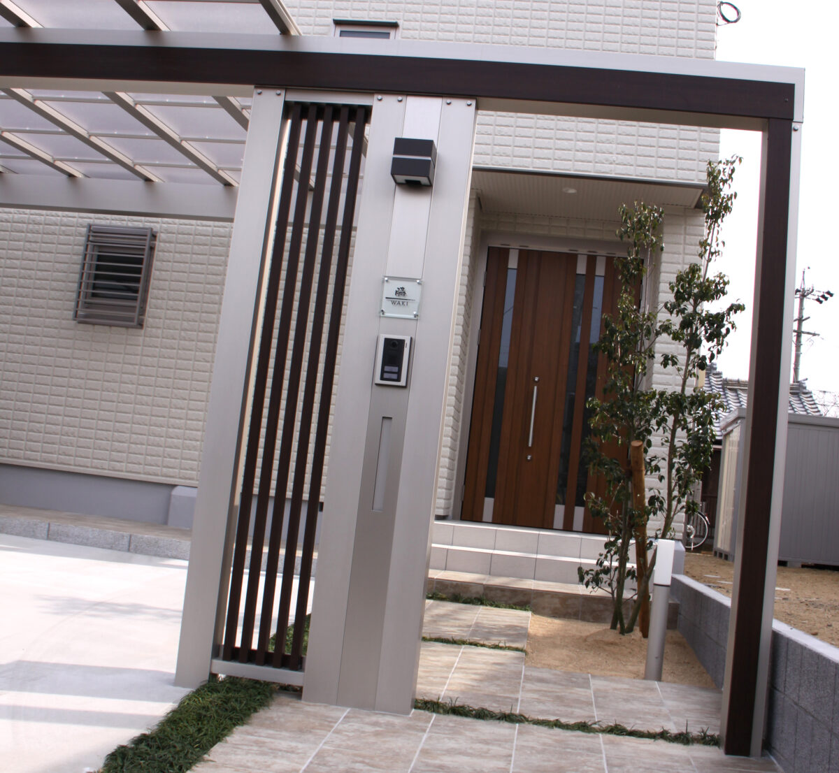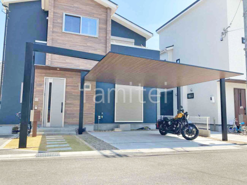 津市 カーポートの見せる梁延長で門廻りを演出ファミリーエクステリア津・四日市・桑名・松阪・岡崎・小牧・豊橋の外構・エクステリア専門店。