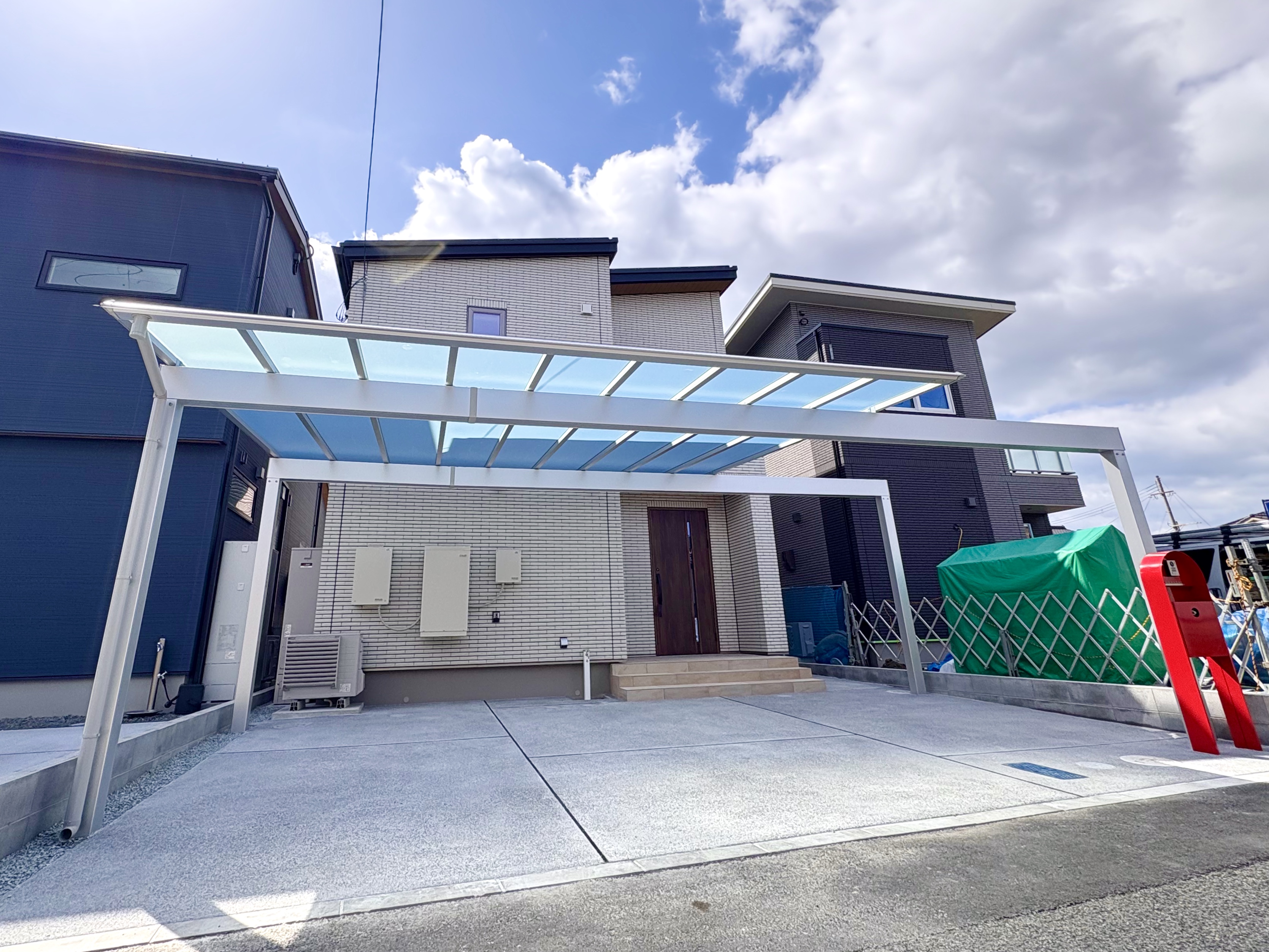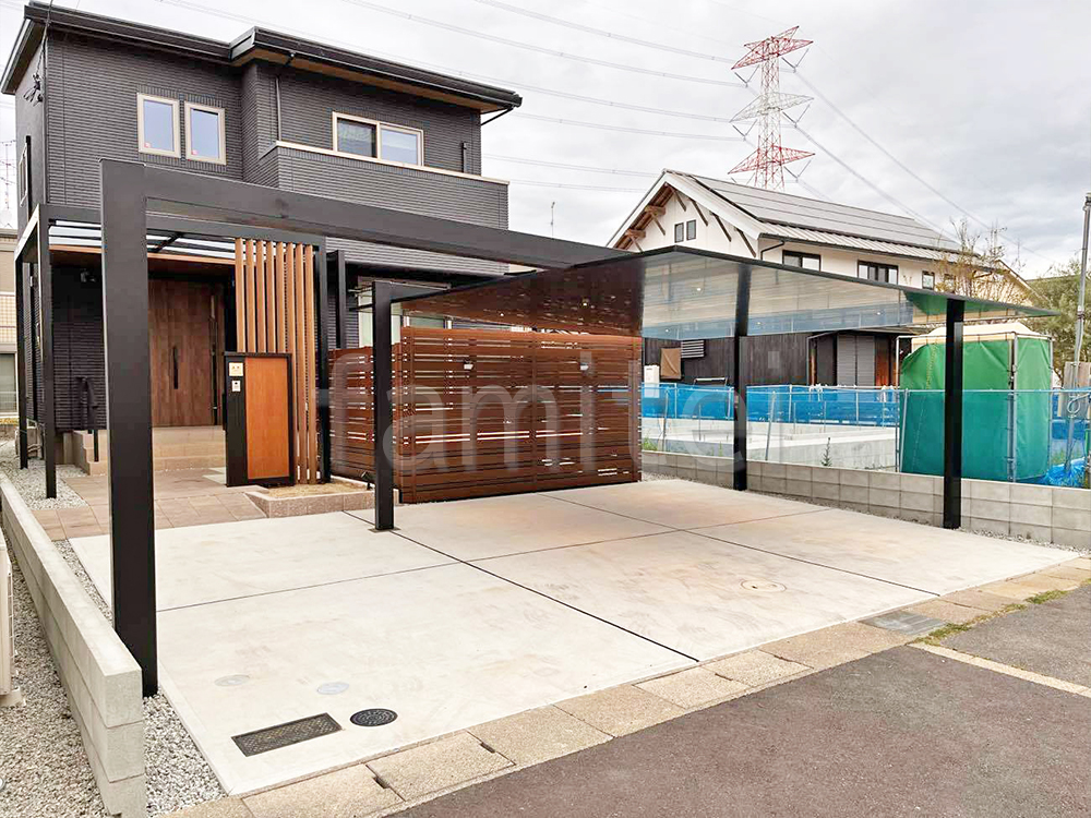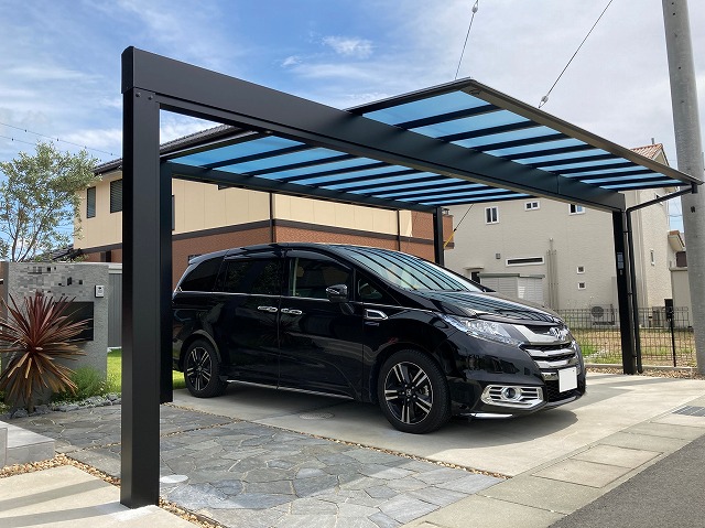 梁延長可能なカーポート スカイリードでおしゃれな駐車スペースに変身! 袋井市O様邸浜松・磐田・袋井のエクステリアならハマニグリーンパーク。