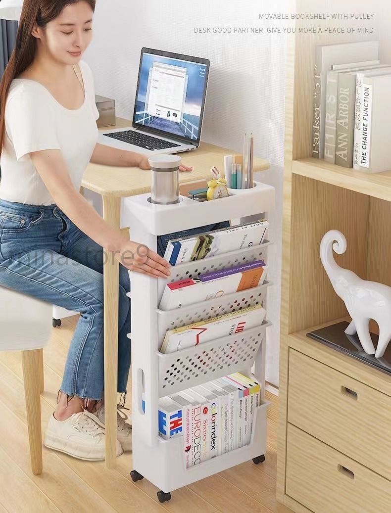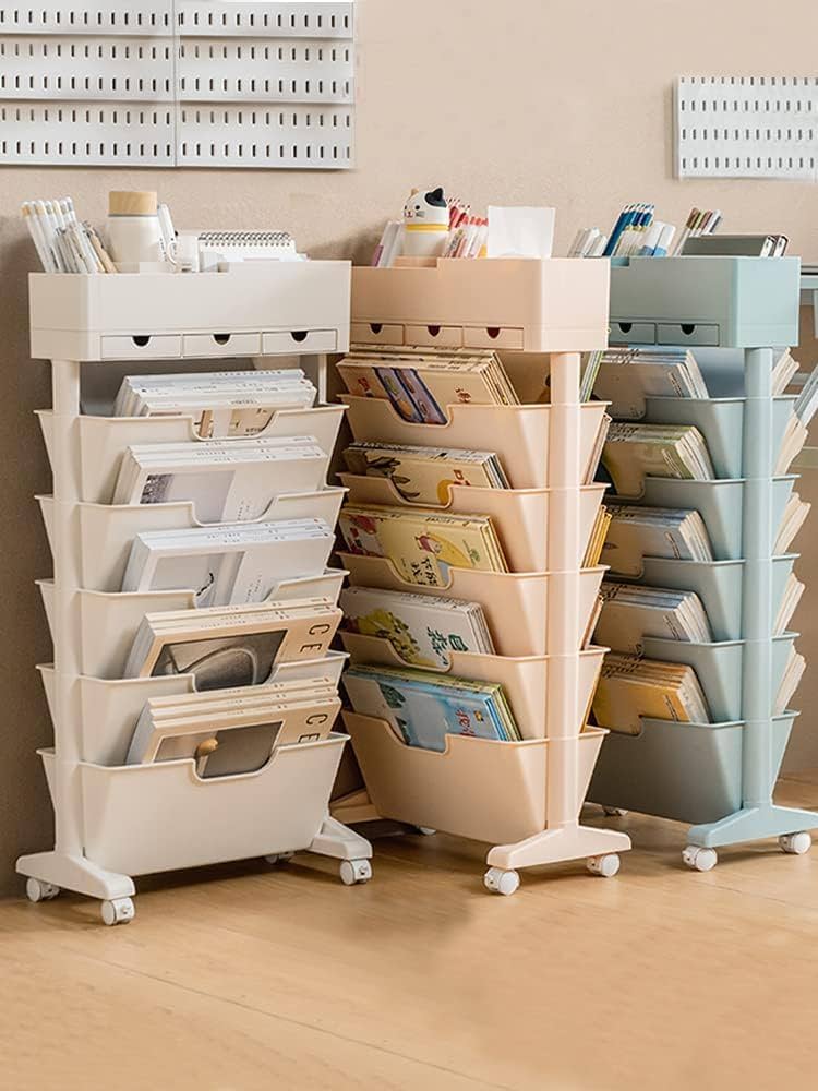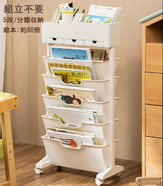 1段 スポーツ・アウトドア 収納ラック 取り出しやすい リビング 書類収納 おしゃれ ファイル デスク収納 教科書 漫画 テレワーク 本収納 本棚5段 オフィス 組立簡単 省スペース 雑誌 ファイルワゴン キャスター付。